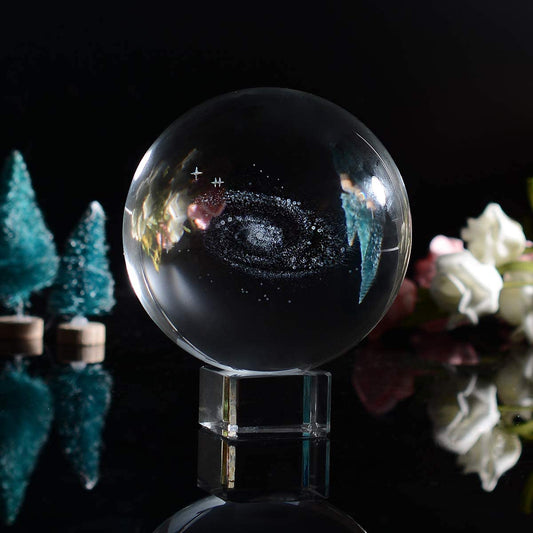 3D Galaxy Crystal Ball Paperweight with Stand (60mm/80mm)