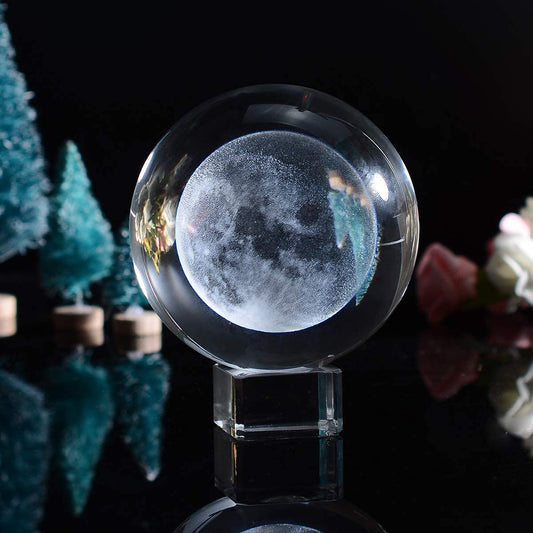 3D Moon Crystal Ball Paperweight with Stand (60mm/80mm)