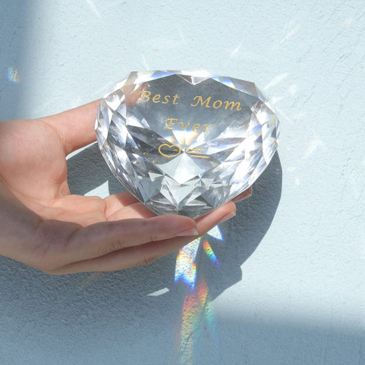Crystal Heart Shaped Diamond Paperweight with "Best Mom Ever"Engraved