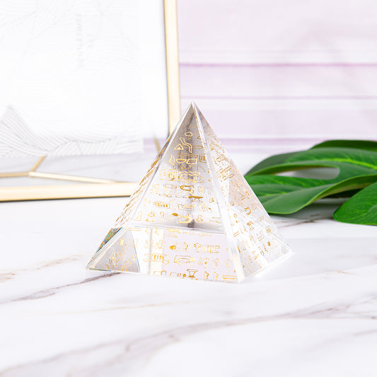 Crystal Pyramid Paperweight with Gold Character Engraved
