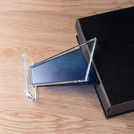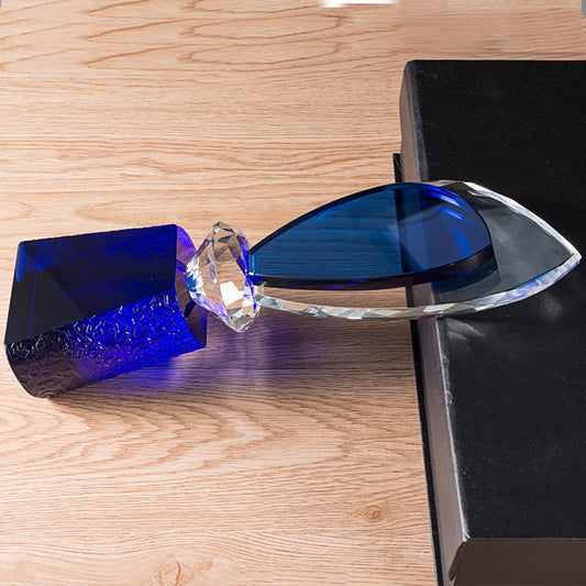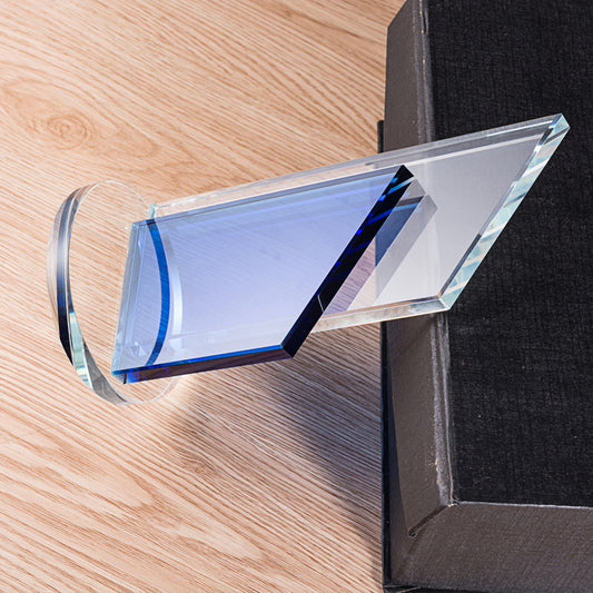JNGA-295 Longwin Diamond Shaped Crystal Trophy with Blue Base