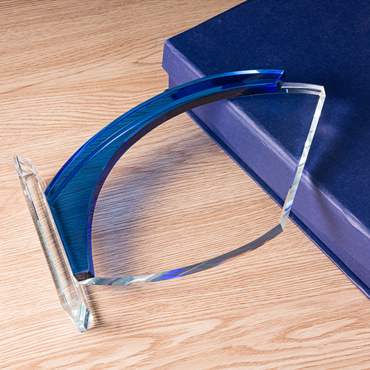 JGC-113 Longwin Crystal Trophy with Layered Blue Accent Base