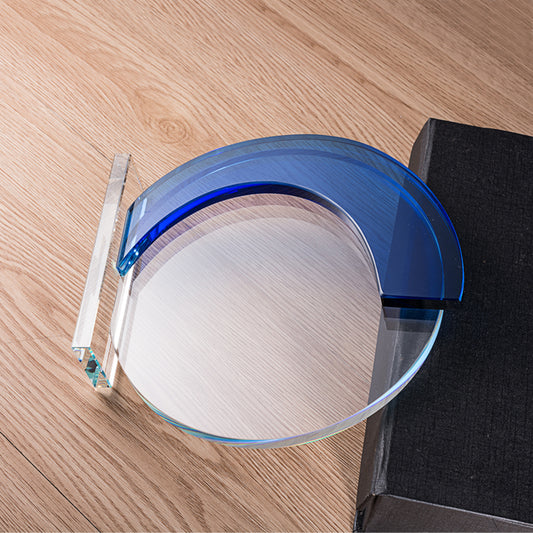 lSTA04009C-18 Longwin Round Crystal Trophy with a Blue Edge