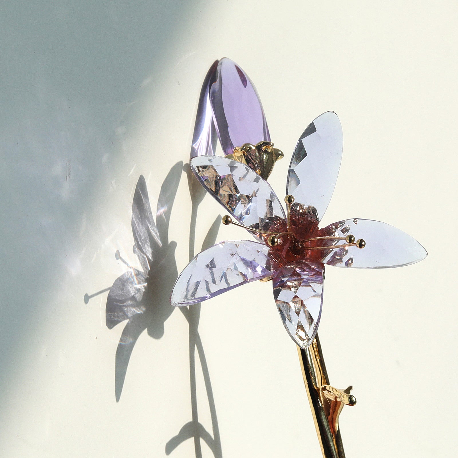 Sparkly glass material with AB coated color artificial lilies, will show rainbow spots under the sunshine, great to be a eyecatching centerpiece decorative ornaments for wedding, party, cafe shop, home, dinning room, living room etc.